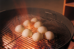 Turn onions over and grill for another 90 seconds. Pour the oil remaining from soaking the onions onto the cut sides, now facing upwards. Again - the oil will cause massive flare-ups so protect your hands and arms.