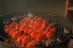 After 90 seconds, remove tomatoes and onions from the grill.