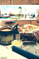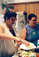 Both of the California Debs attended. First image is Deb B actually appearing to be shy, coy, and innocent. Second image are Deb B and Deb P selecting from the scrumptious eatables. Third image is Deb B and Deb P talking with Pauline - and I ask you - is that the face of someone who is truly shy, coy and innocent???