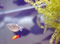 ![]() The fish watch from the safety of their tank. |