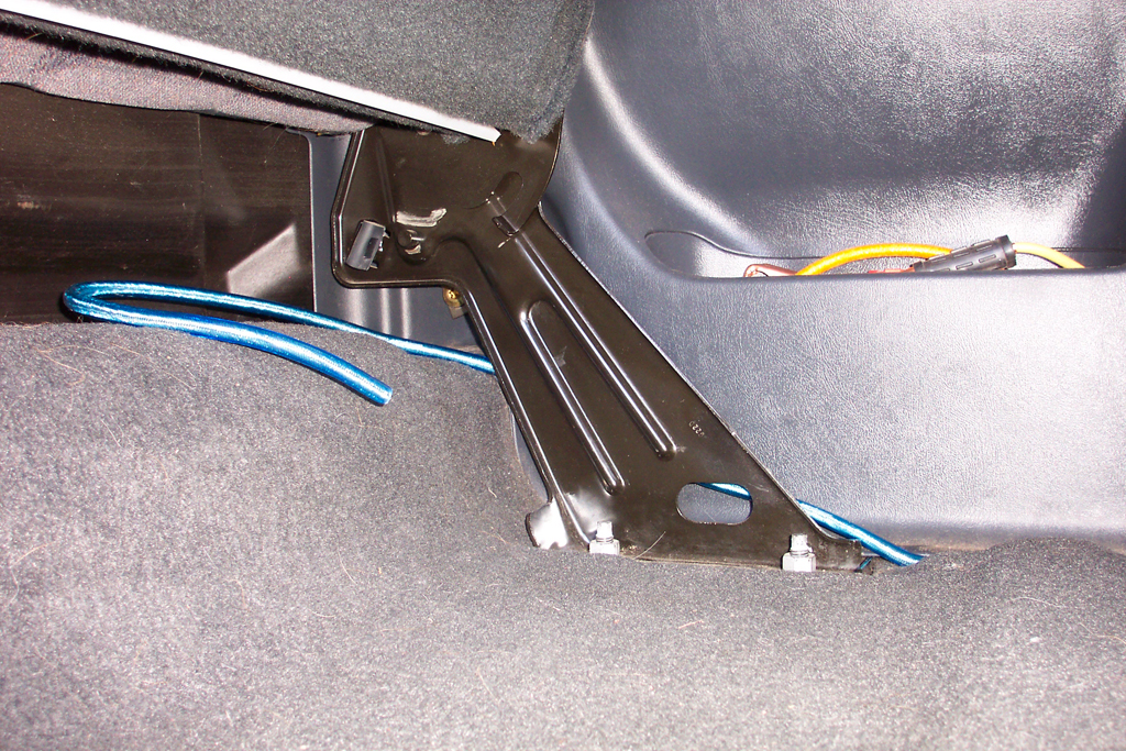The wire under the back seat. It jumps out from behind the rear panel for the moment. For the final install, I'll have to pull the back seat and I'll tuck the wire behind the panel then.
