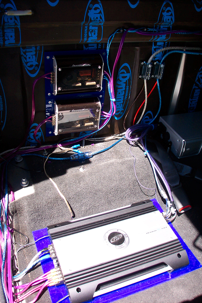 Less glary shot of the crossovers and amp installed.